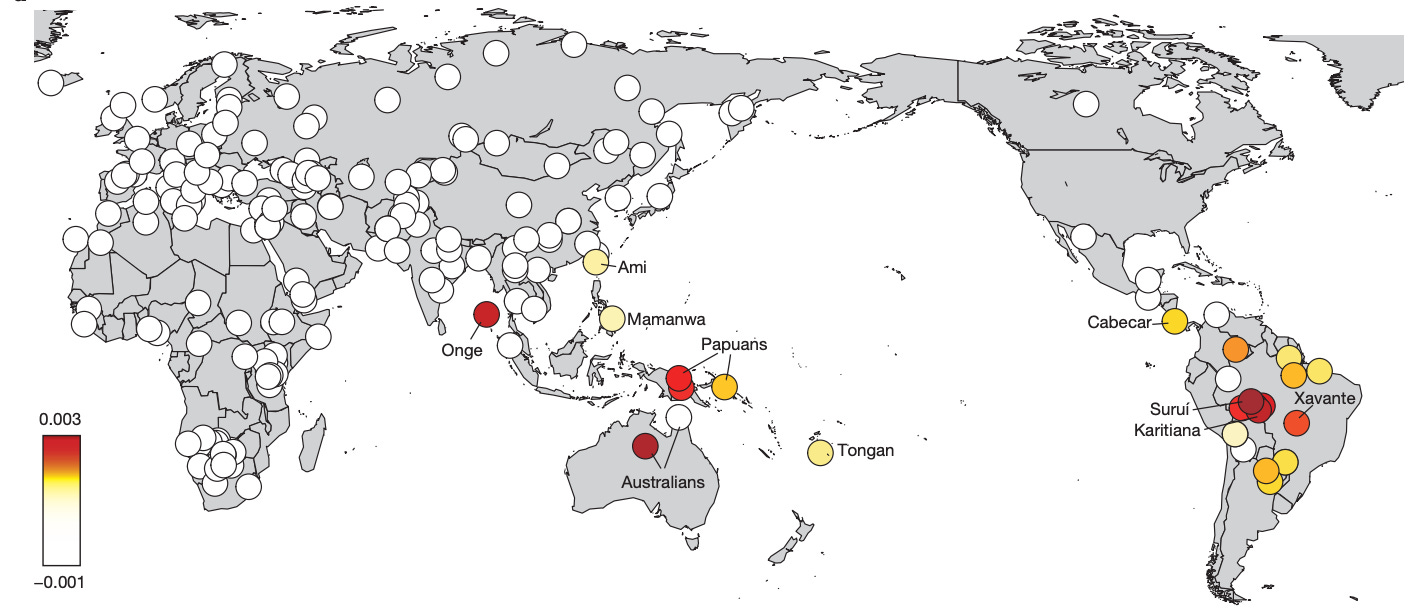 Land acknowledgments always struck me as especially funny and stupid: like you really think those people were the first ones there? What about acknowledging the people that they stole it from? Sure enough one of the coolest parts of Reich's book is his recounting the discovery that there were probably unrelated peoples in the Americas before the ancestors of the American Indians arrived here, and that a tiny remnant of them might even remain deep in Amazonia. So: what does it actually mean to be “indigenous?” Is anybody anywhere actually “indigenous?”