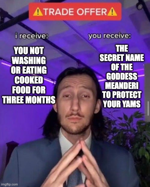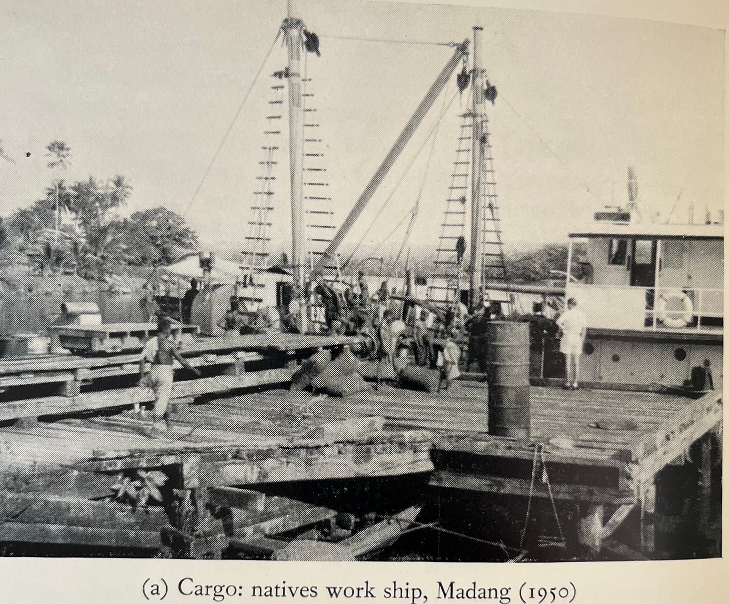 Yali should be better-known.2 He may have been from a backwards backwater, but he’s one of the true Player Characters of history. If we lived in a better world, he would be the subject of a prestige cable drama3 — or maybe a Robert Eggers film, because the values and assumptions of his society are incredibly foreign to a Western audience. And so to really understand and appreciate Yali’s story (and the question he asked an American ornithologist on the beach one day) you need some background about the tribal cultures of the New Guinea coast and their reaction to contact with Europeans. Which is to say, you need to understand cargo cults! Because what Yali actually asked (per Diamond’s recollection twenty-odd years later) was: “Why is it that you white people developed so much cargo and brought it to New Guinea, but we black people had little cargo of our own?”